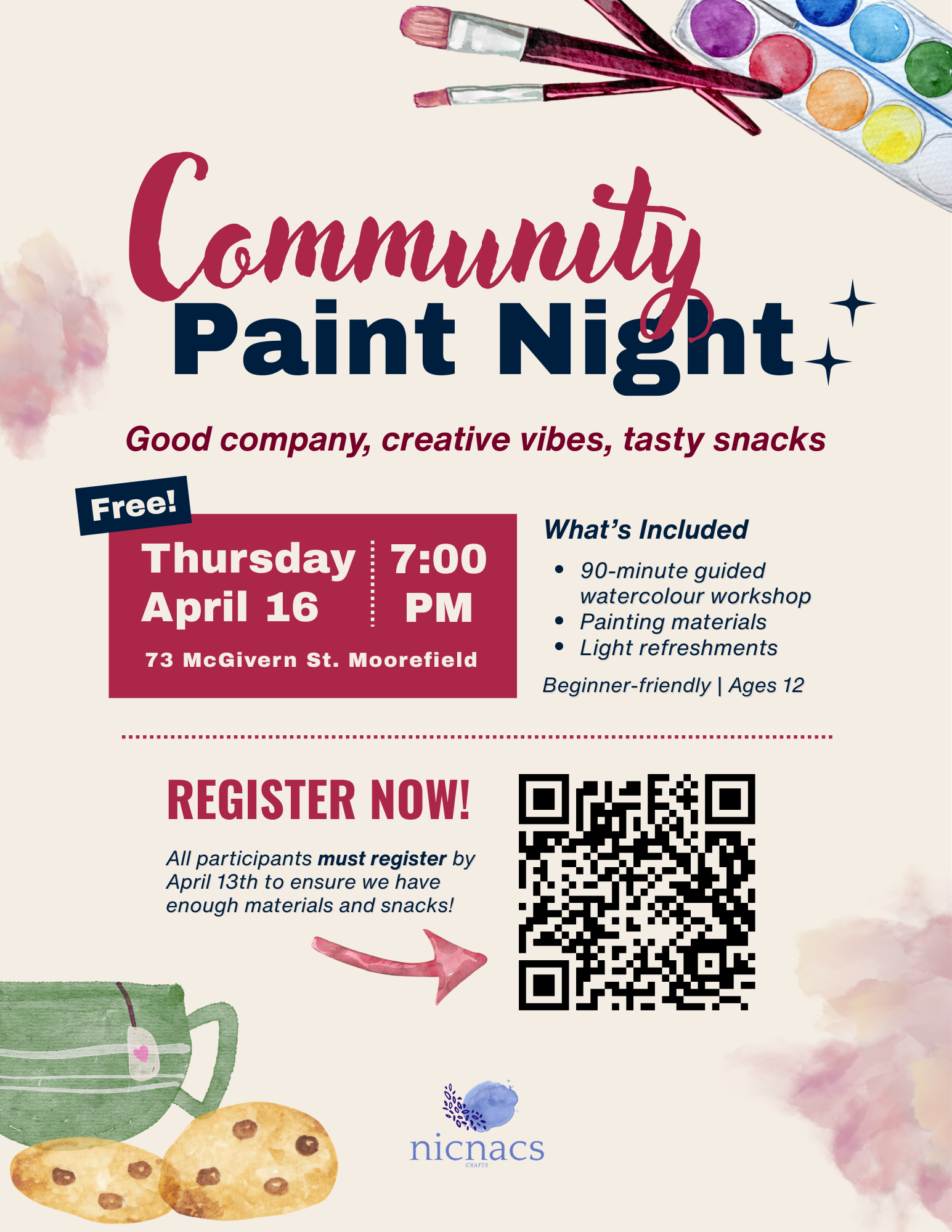 Time: Doors open at 7pm, painting starts at 7:30pm