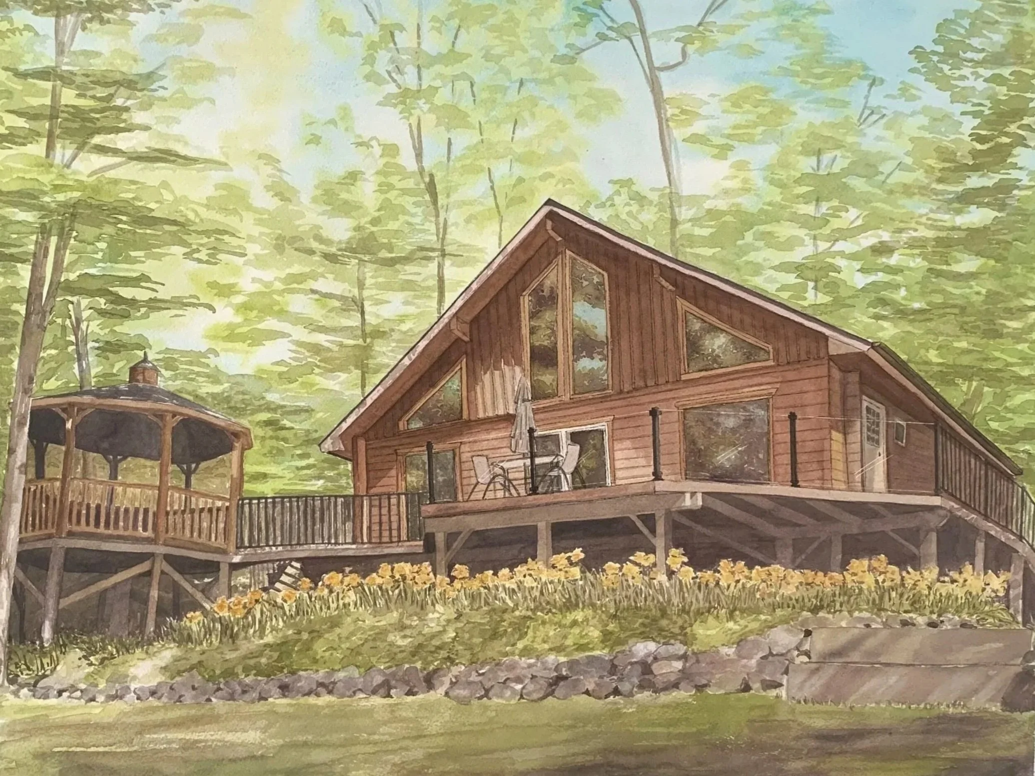 The first house I painted was my own. I don’t remember what inspired me to do it… we had built the house a few years before and I just started painting more “seriously”. I loved painting and I wanted to do more. I even had lofty ideas of making it my side hustle while home with our young kids. After painting our house, I was pleasantly surprised with how it turned out, so I started making more as gifts; my aunt’s house, my dad’s barn, my in-law’s cottage, etc. These all became lovely gifts and helped me learn how to capture a cherished memory through paint.