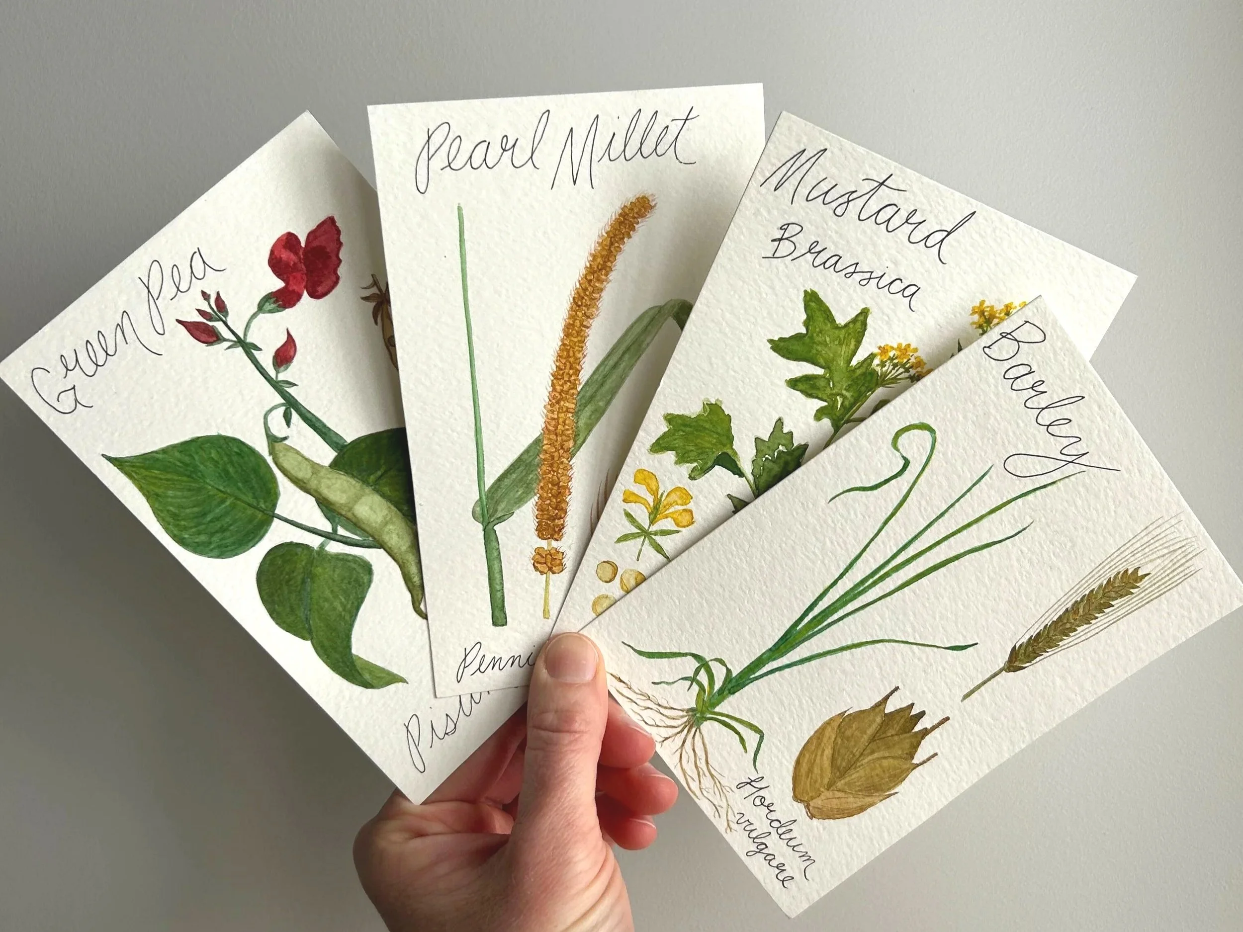 I was still painting in my free time, but it wasn’t much of a priority. I only painted in the spring and summer months when I could take my supplies outside and enjoy a warm evening. I usually found pictures I liked on Pinterest and recreated them for cards and gifts. Sometimes I worked on personal projects, like a collection of field crop botanicals we used as table numbers for our wedding. My practice was a sporadic practice, at best.
